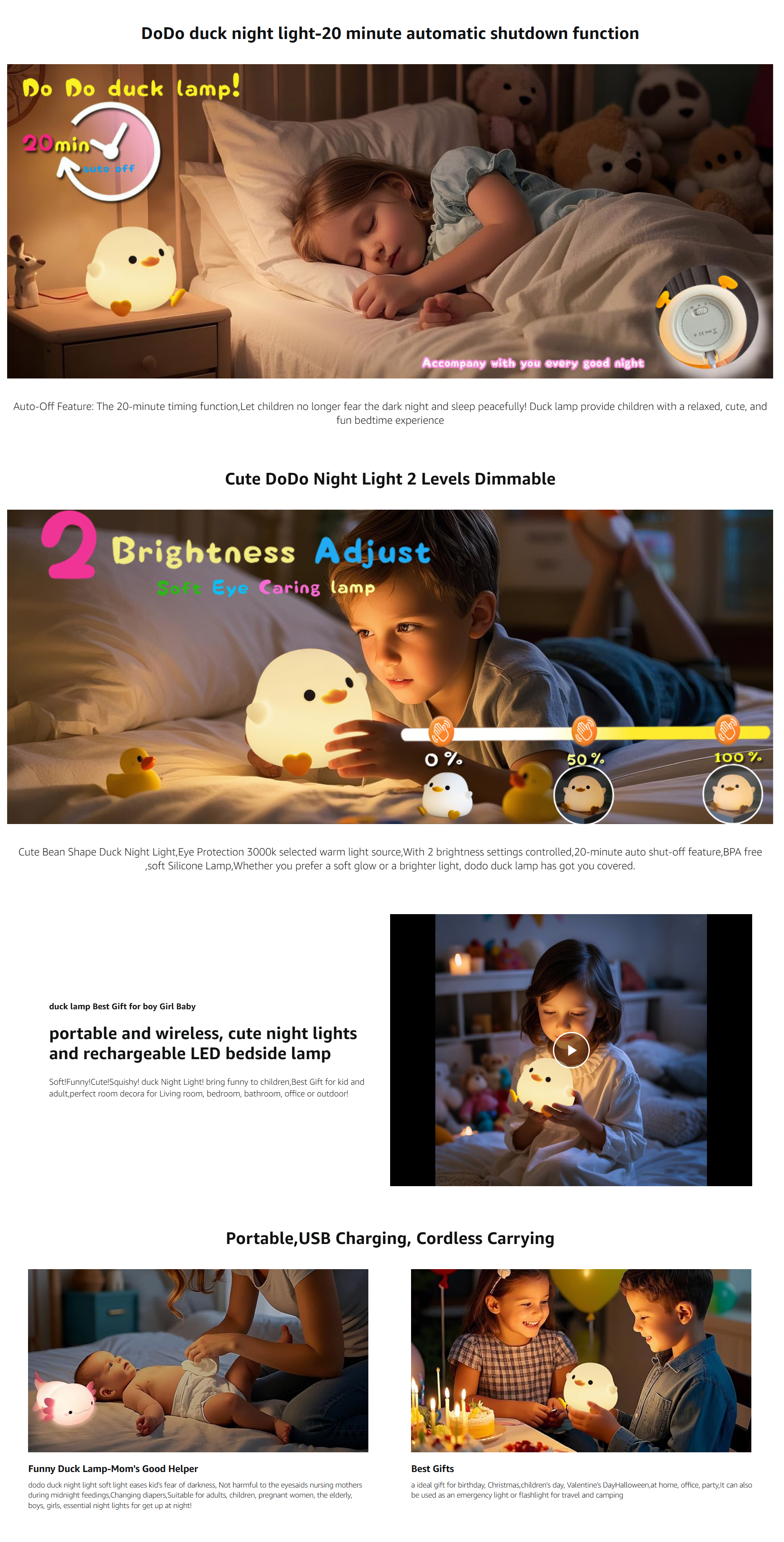 DREAMING MY DREAM Cute Duck Lamp,Do Do Duck Night Light,Silicone Squishy Nursery Bedside Lamp